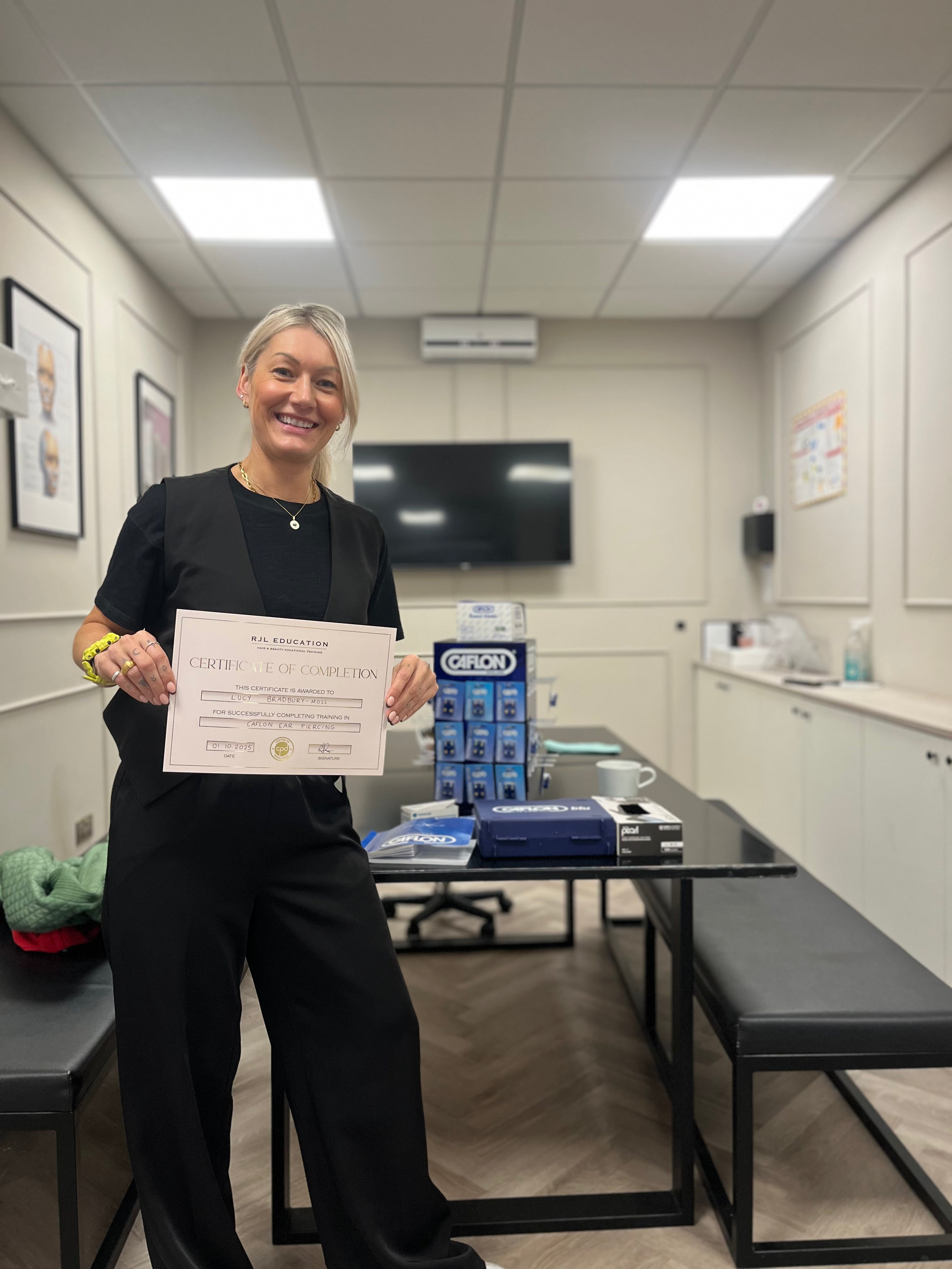 Discover professional ear piercing expertise through our comprehensive Caflon training programme, delivered from our dedicated facility in Bolton, Greater Manchester. Ideal for aspiring practitioners seeking to establish foundational competencies and gain valuable insight into contemporary piercing practices, this course equips you with industry-recognised skills and knowledge to confidently enter the field.